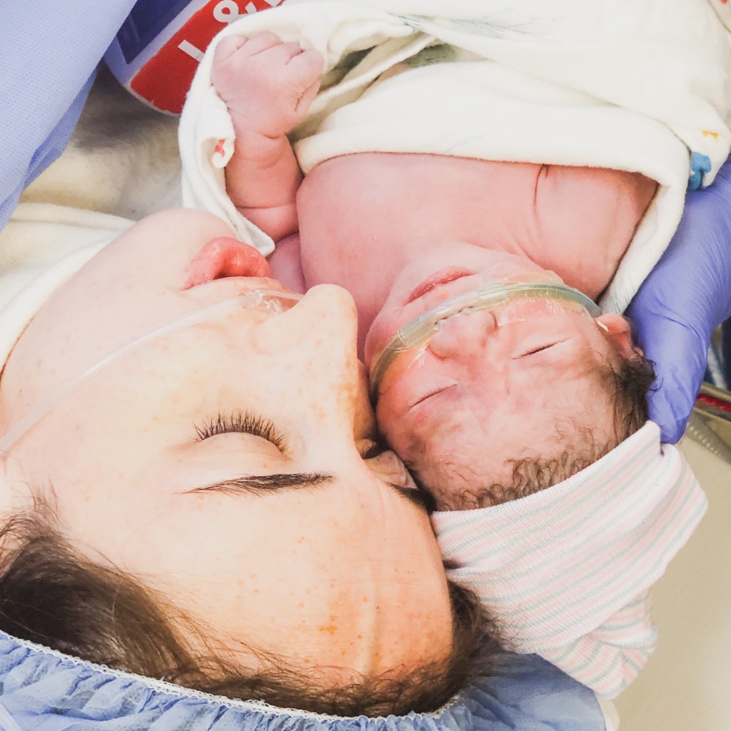 My husband came over to tell me all was well with our baby and then a nurse came and said she was doing well enough that they were going to bring her over to me for a moment before they went up to the NICU (Neonatal Intensive Care Unit). She brought my baby over. She was crying and bright red with a nasal cannula over her face. The nurse brought her face to mine so that we were cheek to cheek. Someone else snapped a couple pictures for us and then they all left. My husband went with my daughter’s team. It seemed to be such an empty room now despite there still being the team that was taking care of me.