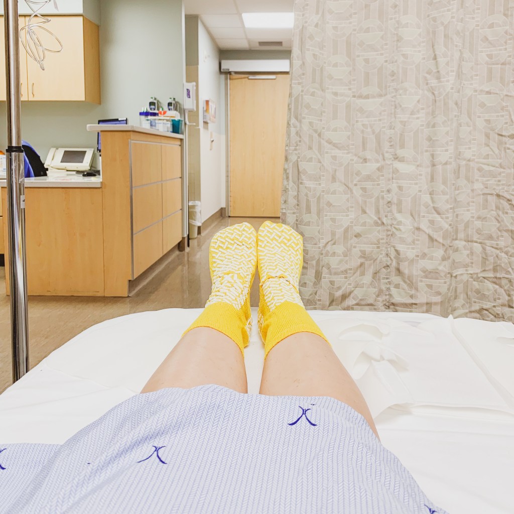 My husband and I were brought back to a special bay room for mothers who were getting ready to have C-sections or those who had just had them. I was the only one in the room when we arrived but there were four or five beds there in case they needed them. Nurses came by to give me a gown and socks to change into, ask ten billion questions, sign forms, hook me up to some monitors, and start an IV. The IV fluids they started had been warmed up which was so so so nice! Normally when receiving IV fluids, I get freezing cold but by warming the fluids I didn’t have this unpleasant side effect. The nurses were being extra sweet to me and I think it’s because they knew we were having a heart baby. They already had a binder full of information about my daughter and myself that had been sent over from the perinatologist. Every once in a while an alarm would beep and they’d tell me to take a big breath. Apparently my oxygen saturation was dipping below 96% and setting off the alarm. They gave my husband a gown, cap, and mask to wear so that he could be in the OR with me. The anesthesiologist came by and explained that today he would be doing a spinal block. More time passed and more questions answered.